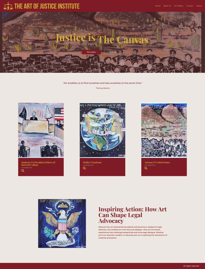 The art of Justice What is this? The Art Of Justice Institute was a client for my class in “Web Architecture” at Pikes Peak Community College. Through this experience, we got a taste of the what clients are like in the real world. My Expirience Overall, the biggest challenge in making this website, was understanding what the client wanted. It helped me understand that the process of meeting with your client and trying to come to common ground with what you are going to be making.